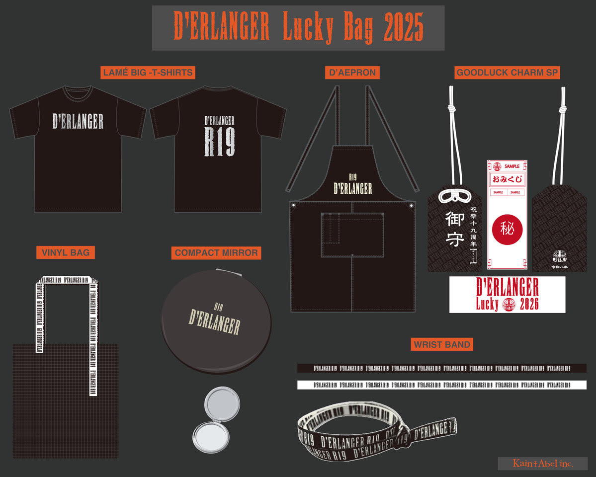 - ※御守の中には、「オリジナルD’ERLANGERおみくじ」「オリジナルロゴ・メンバー直筆サイン」が封入されています。
